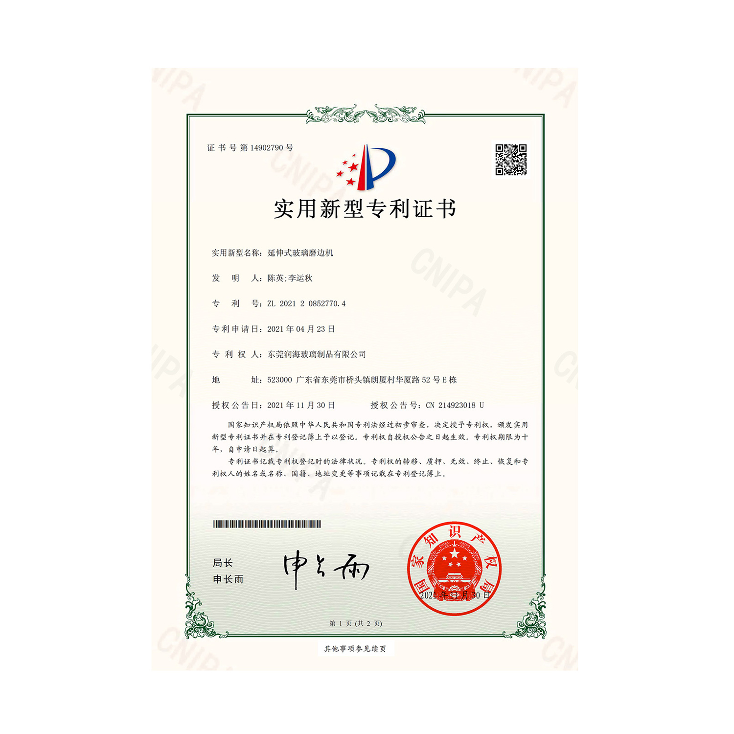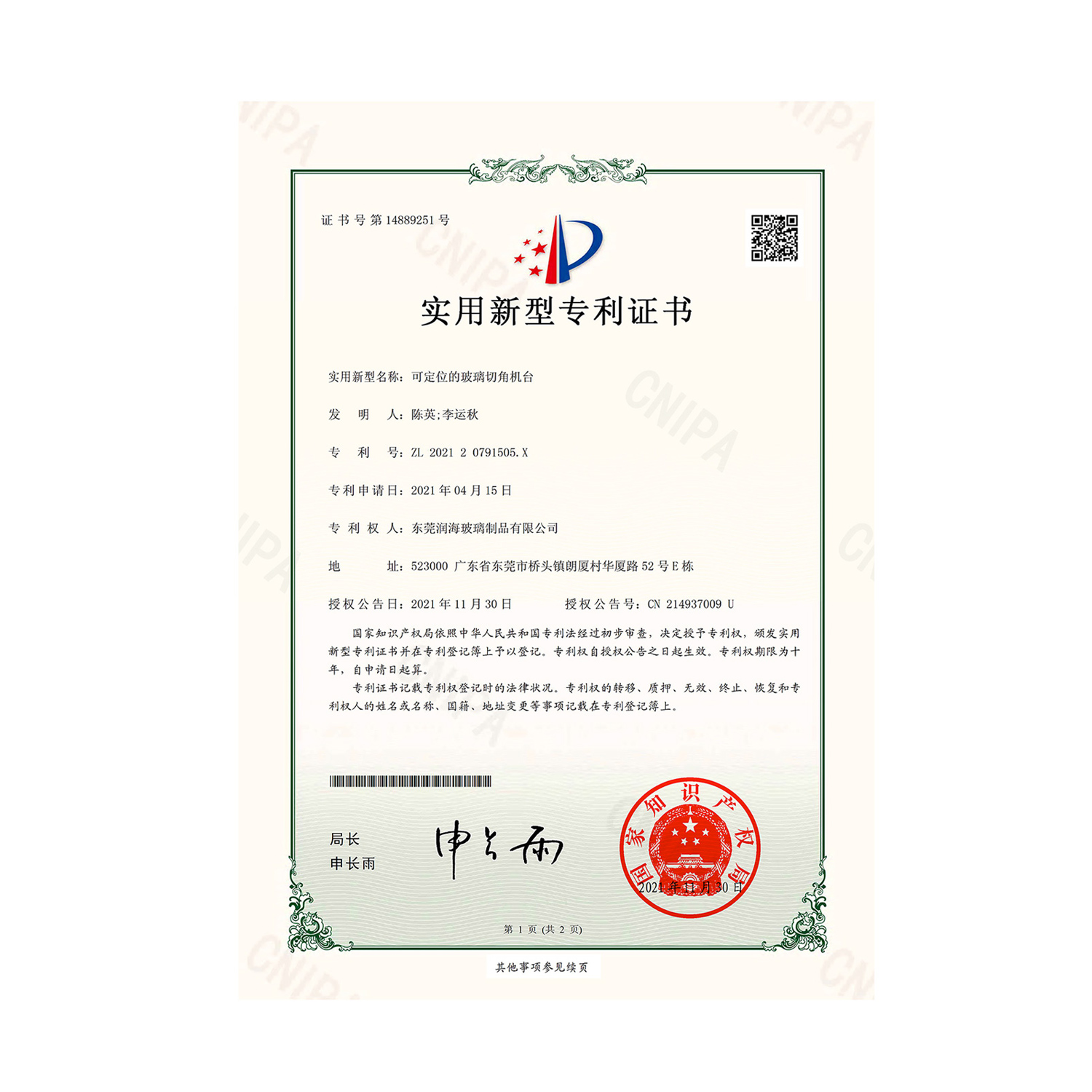 專利證書